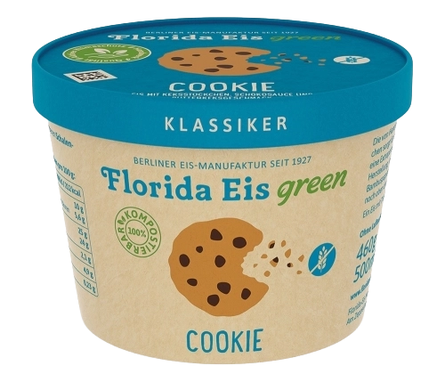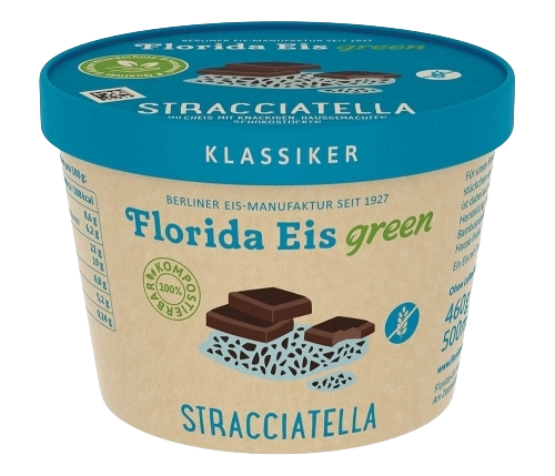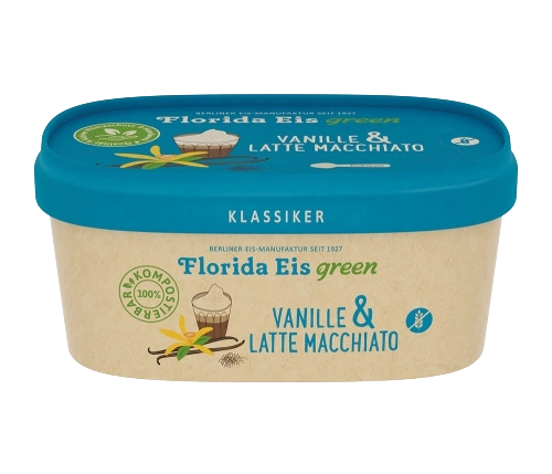 Vanille-Milcheis mit echter Bourbon-Vanille kombiniert mit Latte-Macchiato-Eis mit Schoko-Mokka-Stückchen
