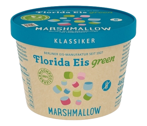 Milcheis mit Mini-Marshmallows und Erdbeersauce